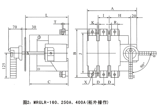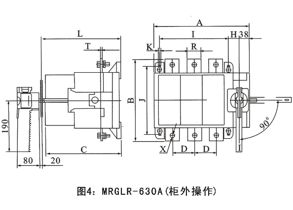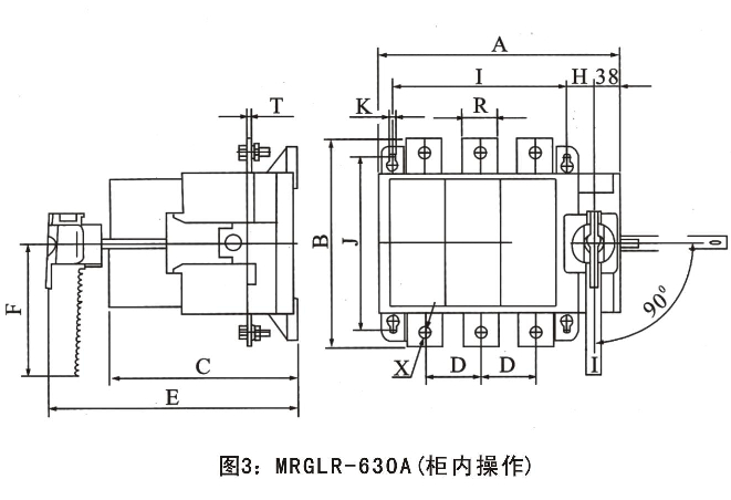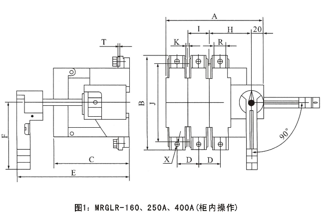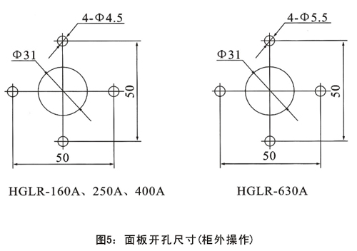 手柄可直接裝在開關上操作(簡稱柜內操作),也可通過加長軸在配電柜門外操作(簡稱柜外操作)。